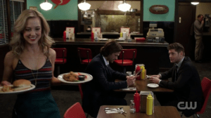 Side note: in episodes like this, I enjoy the banter between Sam and Dean in places like the diner. Think that’s my favorite part. I mean, do Jared and Jensen even need a script for this anymore?